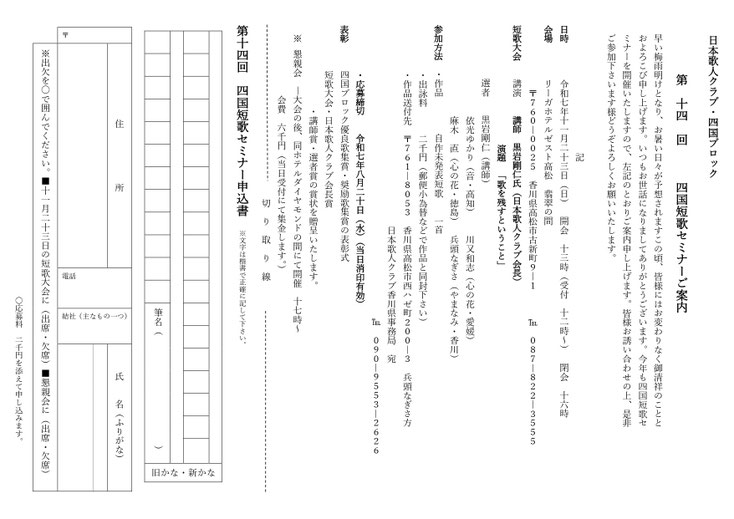 第14回四国短歌セミナー 作品募集要項